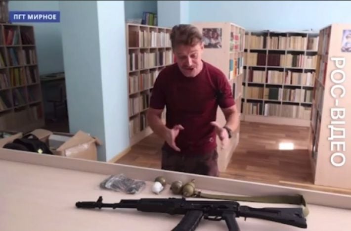 Російські пропагандисти відкрито вихваляються цим. На одному з відео кремлівський рупор Хорьков з особливою радістю розповідає, що до школи в селищі Мирне під Мелітополем завезли гранати, патрони та автомати Калашникова.