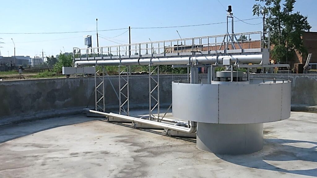 Вторинні радіальні відстійники діаметром 40 метрів – це заключна фаза біологічного очищення. Саме тут стічна вода розділяється на освітлену воду та мул, який потім повертається для повторного використання, а вода скидається у водойму, тобто надійна робота цього відстійника суттєво впливає на довкілля.