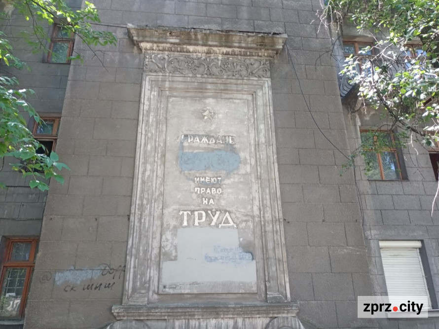 Він також звернув увагу, що на цьому будинку досі можна побачити велетенську цитату з конституції СРСР: «Громадяни право на труд». Цю напис бачать люди, які повертаються із заводів додому.