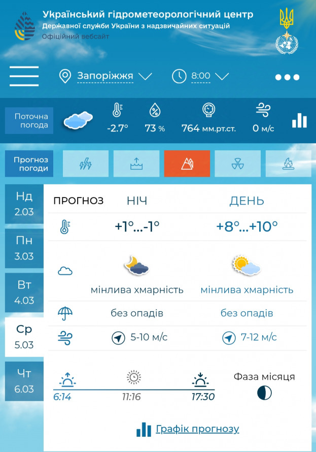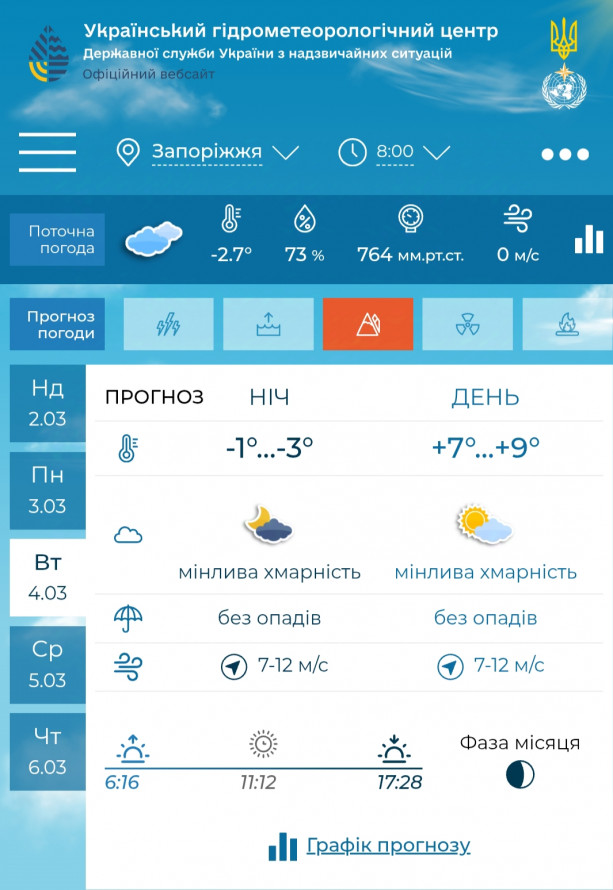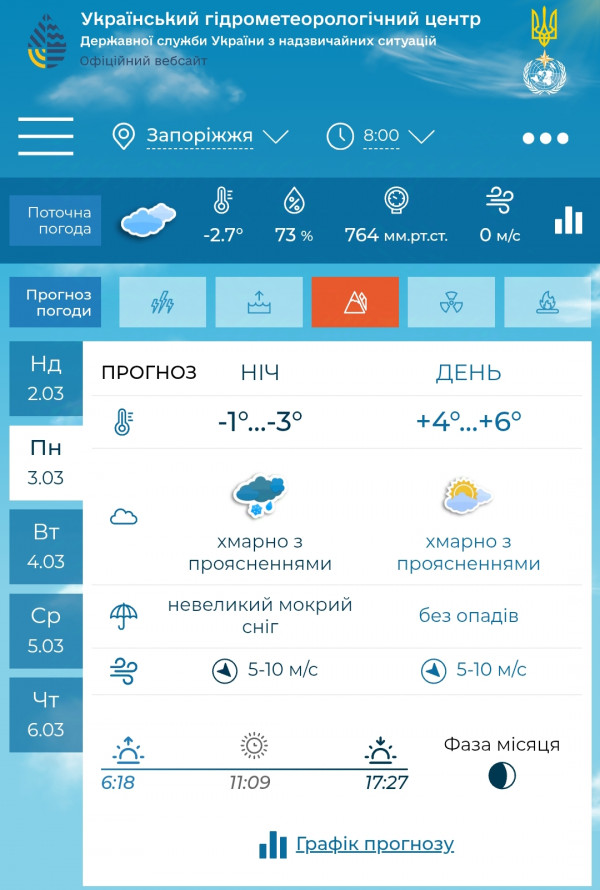 Прогноз погоди в Запоріжжі на 3-5 березня
