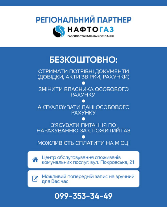 Центр обслуговування споживачів знаходиться за адресою: вул. Покровська, 21.