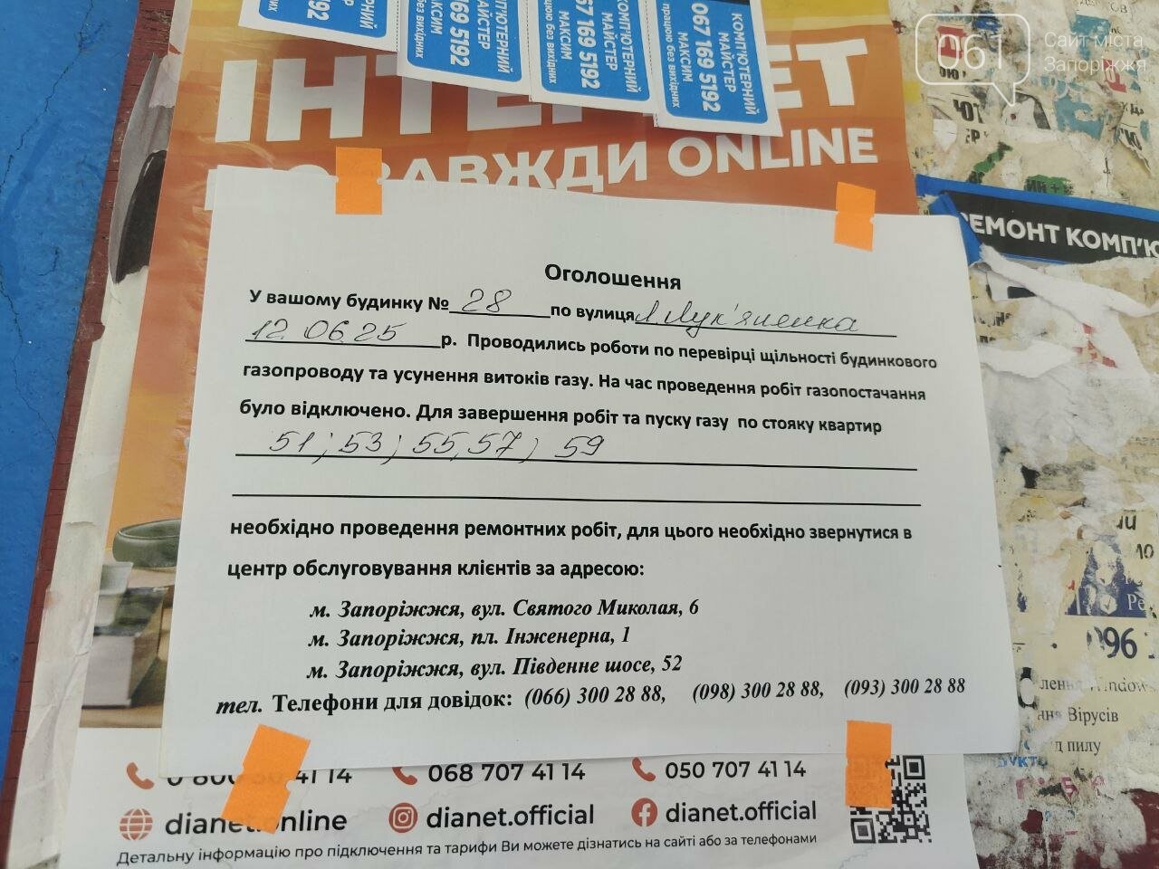 За словами мешканців, газ у п’ятому під’їзді зник після планової перевірки, яку проводили представники компанії «Запоріжгаз» 12 червня.