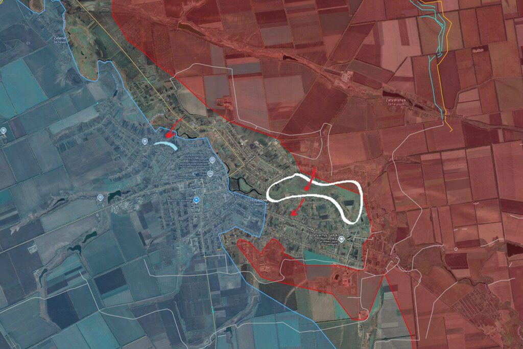 За даними Playfra, російські війська намагаються використовувати заболочену ділянку як найвужче місце для форсування річки Гайчур (на карті позначена білим кольором – ред). Саме ця зона розглядається противником як найбільш зручна для прихованого переходу та подальшого просування.