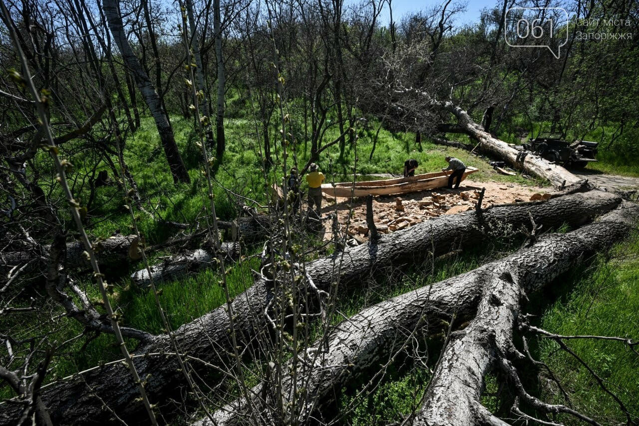 Попри близькість фронту та посилення обстрілів на Хортиці відтворити стародавній процес будівництва човна-довбанки. Працівники заповідника зробили зі стовбура сторічної тополі човен-моноксил, намагаючись максимально дотримуватися давніх технологій і використовувати здебільшого старовинний інструмент, наприклад, сокири XVI століття.