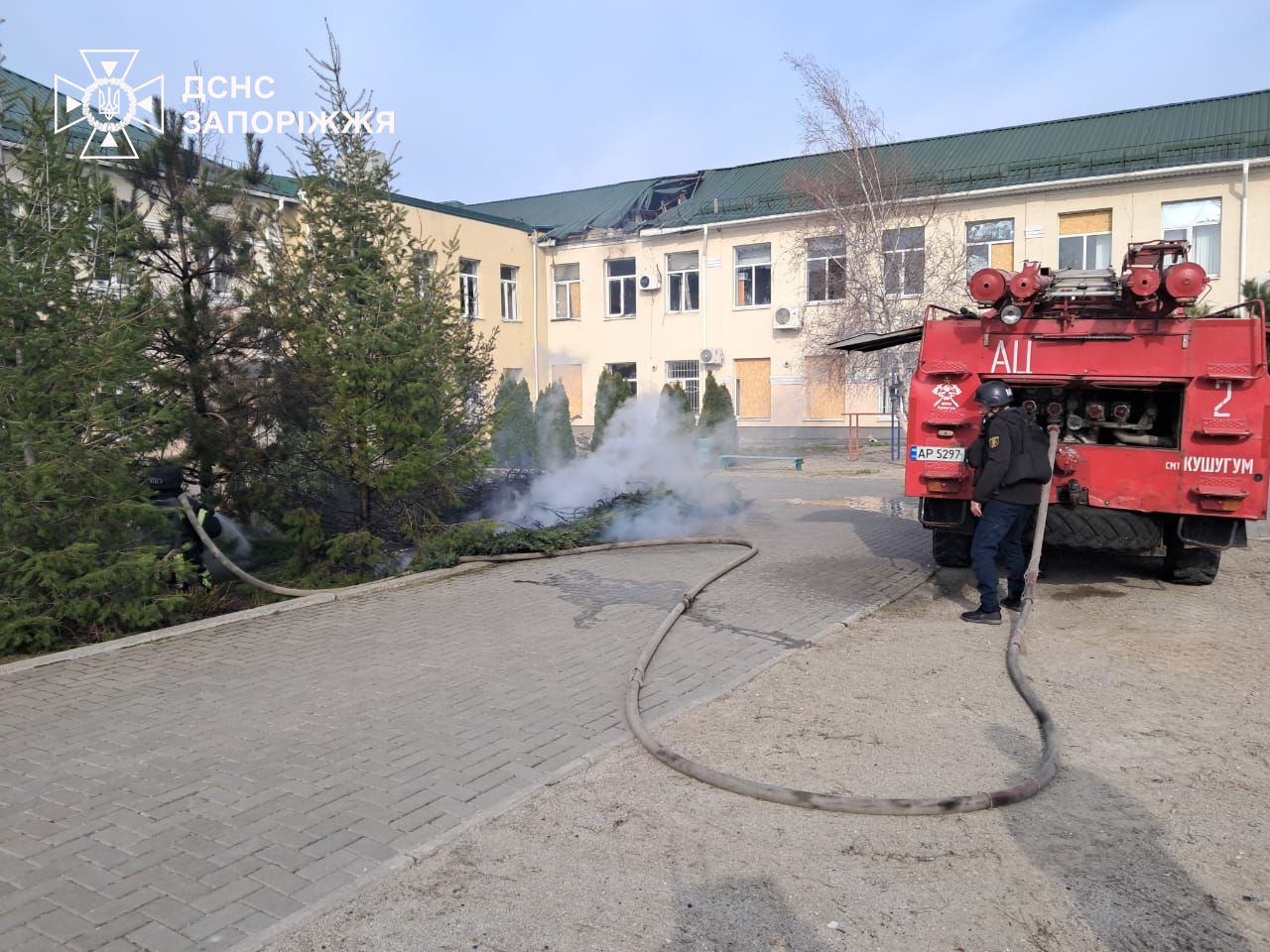 В одному із сіл рятувальники ліквідували наслідки влучань по закладу освіти. Крім того, вогнеборці загасили суху траву на відкритій території на площі 15 кв.м.