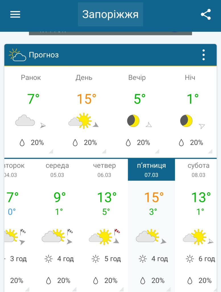 За даними онлайн-сервісів погоди у Запоріжжі очікується: