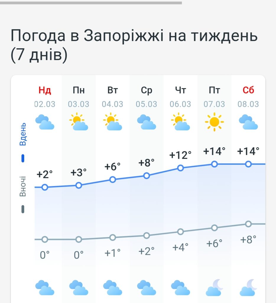 Початок березня принесе у Запоріжжя справжнє весняне тепло. Після місяця морозів температура повітря дуже швидко підніметься до майже квітневих показників.