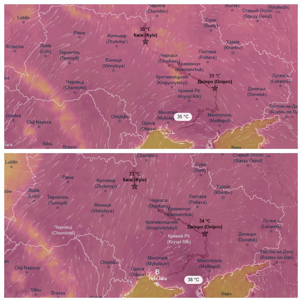 За прогнозом синоптиків, кульмінація спекотної хвилі припаде на п’ятницю-суботу (6–7 червня). У південних регіонах (Одеська, Херсонська, Миколаївська області) температура сягатиме +38°C, що є аномально високим показником для початку червня.