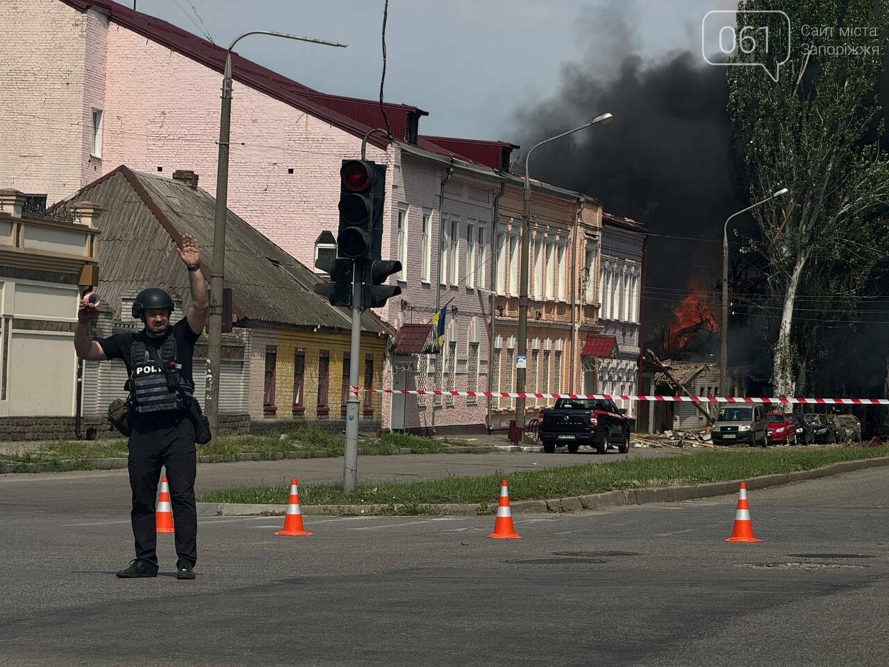 Наразі пошкоджені десятки приватних будинків в Олександрівському районі міста, один з корпусів університету «Запорізька Політехніка». Щонайменше 8 містян були госпіталізовані. Про це повідомив в коментарі журналістам голова Запорізької ОВА Іван Федоров.