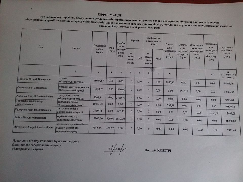 У березні, коли стало відомо, що лікарні області аж ніяк неготові до великого надходження заражених коронавірусом Туринок отримує найвищу, з часу призначення заробітну плату – 58 тисяч гривень.