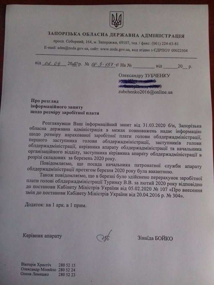 Віталій Туринок розробив проєкт рішення по перерозподілу коштів в якому передбачено лише 110 мільйонів з необхідних 400. Гроші Туринок пропонує забрати у в людей, які претендуали на матеріальну допомогу. Статті витрат на високі заробітні плати на дороговартісні стільці для чиновників голова ЗОДА залишив.