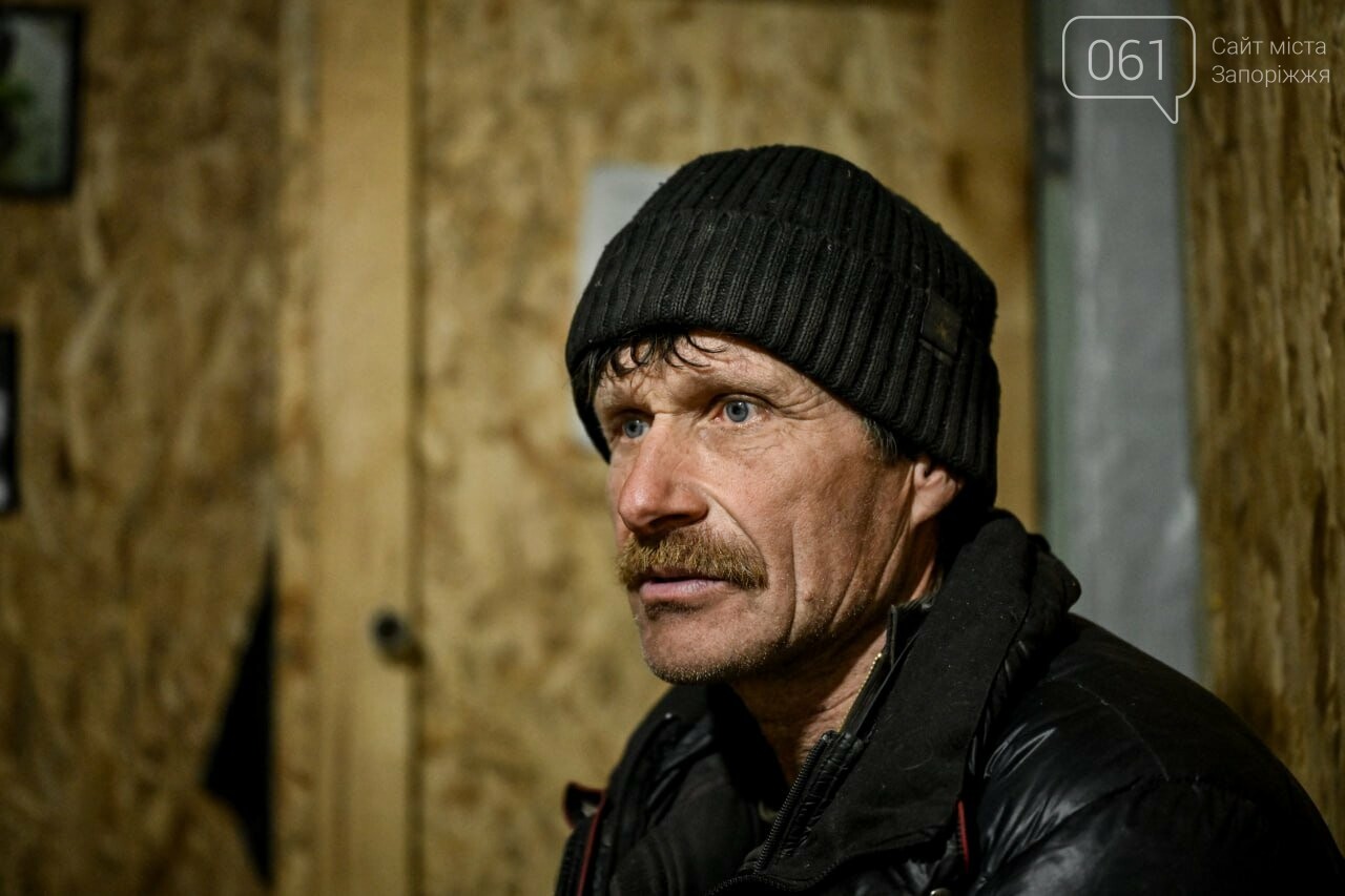 Він раніше жив в квартирі. Її розбомбило. Потім переїхав в хату родичів, вона також вже зруйнована. В підвалі, де живе нині, під час дощів тече стеля, доводиться підставляти відра.