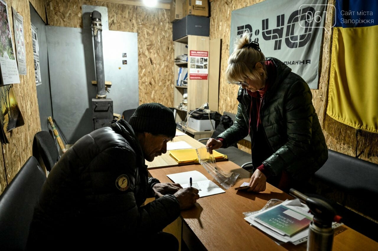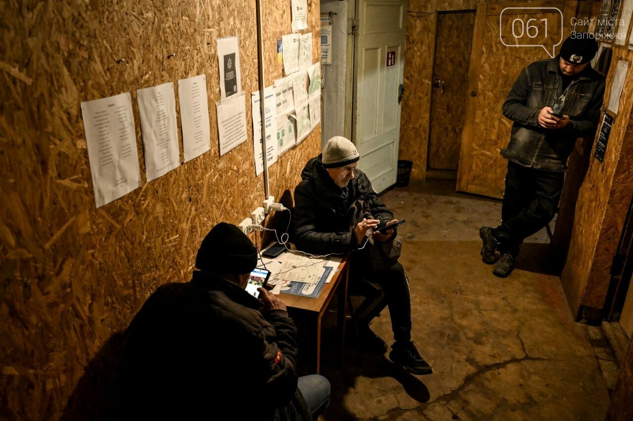 З 12 жовтня 2022 року в місті немає електрики. Пункт незламності працює на генераторах. Там місцеві можуть зарядити павербанки, ліхтарі, підключитись до інтернету, що написати своїм рідним та близьким, бо мобільний звʼязок тут також відсутній. Олександр працює комунальником, живе в підвалі, ліхтарі заряджає павербанками, а їх — відповідно заряджає в пункті незламності.