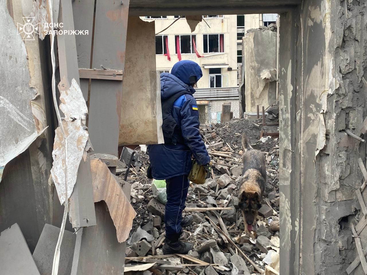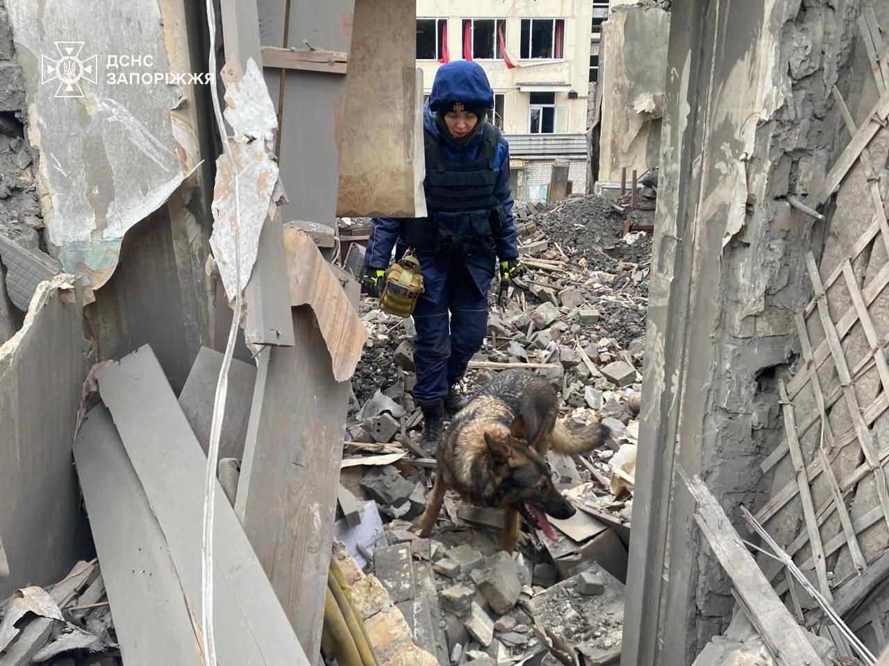 У Запоріжжі на місці частково зруйнованого внаслідок російського авіаудару 2-поверхового житлового будинку тривають пошуково-рятувальні роботи.