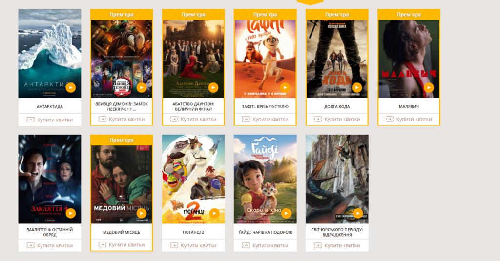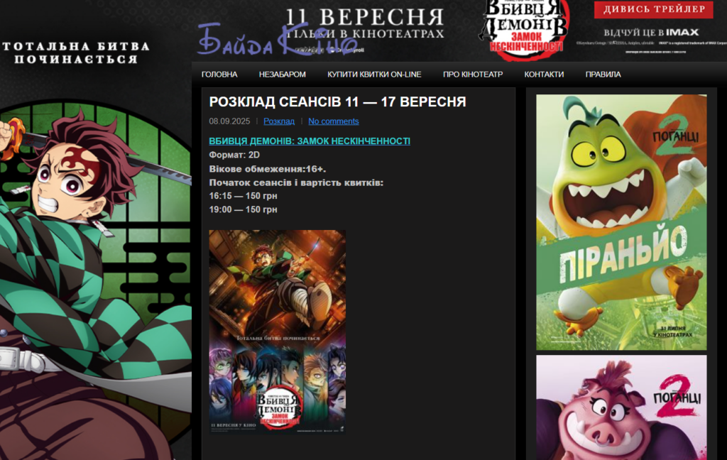Вартість квитка на будь-який із фільмів становить 150 гривень.