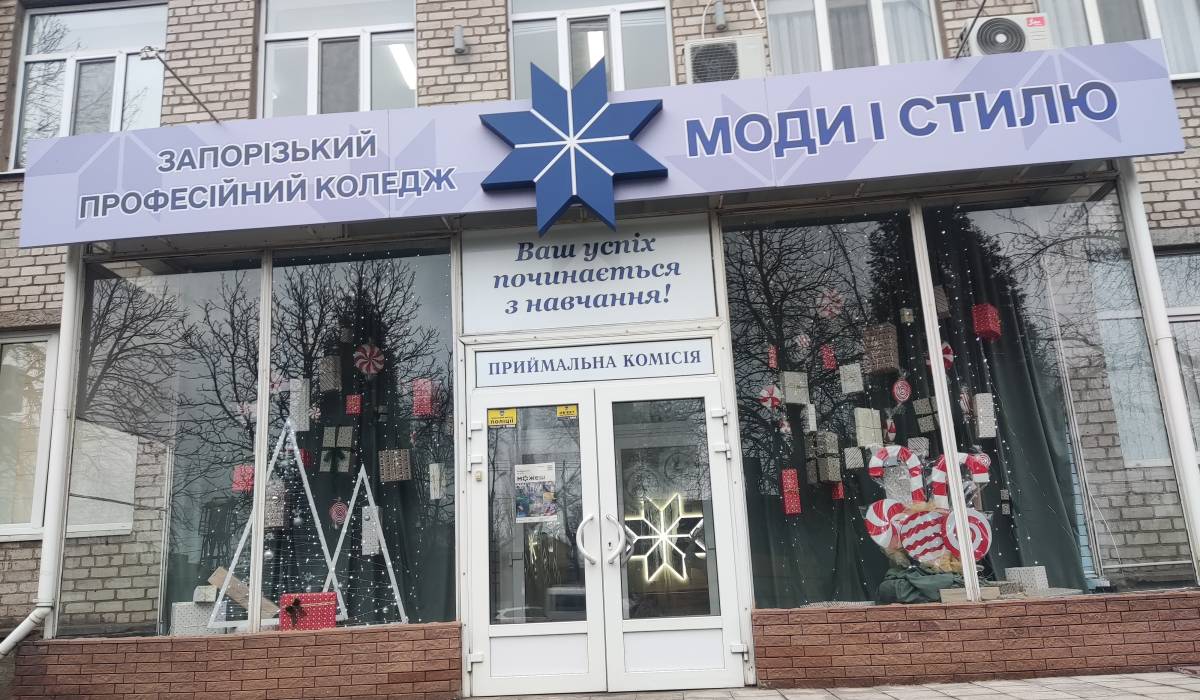 У Запорізькому коледжі моди та стилю студенти, які навчаються на декораторів, прикрасили свій навчальний заклад до різдвяних та новорічних свят. Це перші роботи учнів.