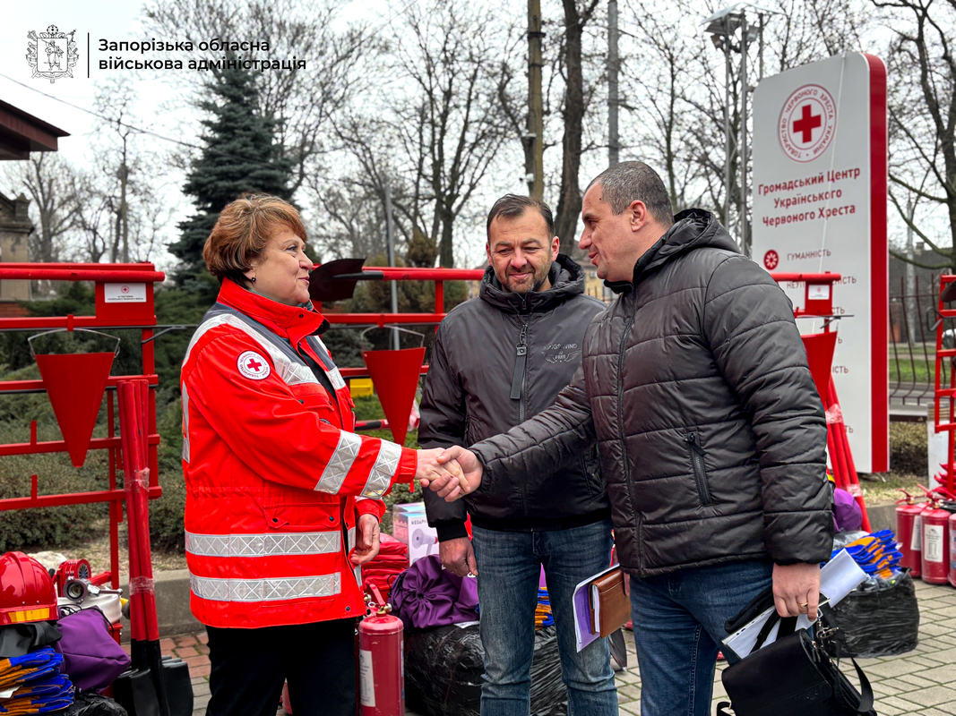 Запорізька обласна організація товариства Червоного Хреста передала комплекти пожежного спорядження для добровільних пожежно-рятувальних формувань Кушугумської, Новоолександрівської, Михайлівської та Широківської громад.