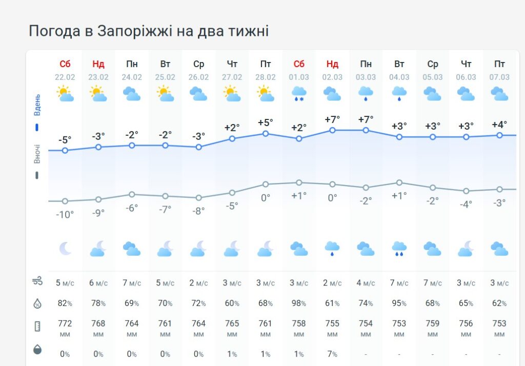 Погода у Запоріжжі в кінці лютого
