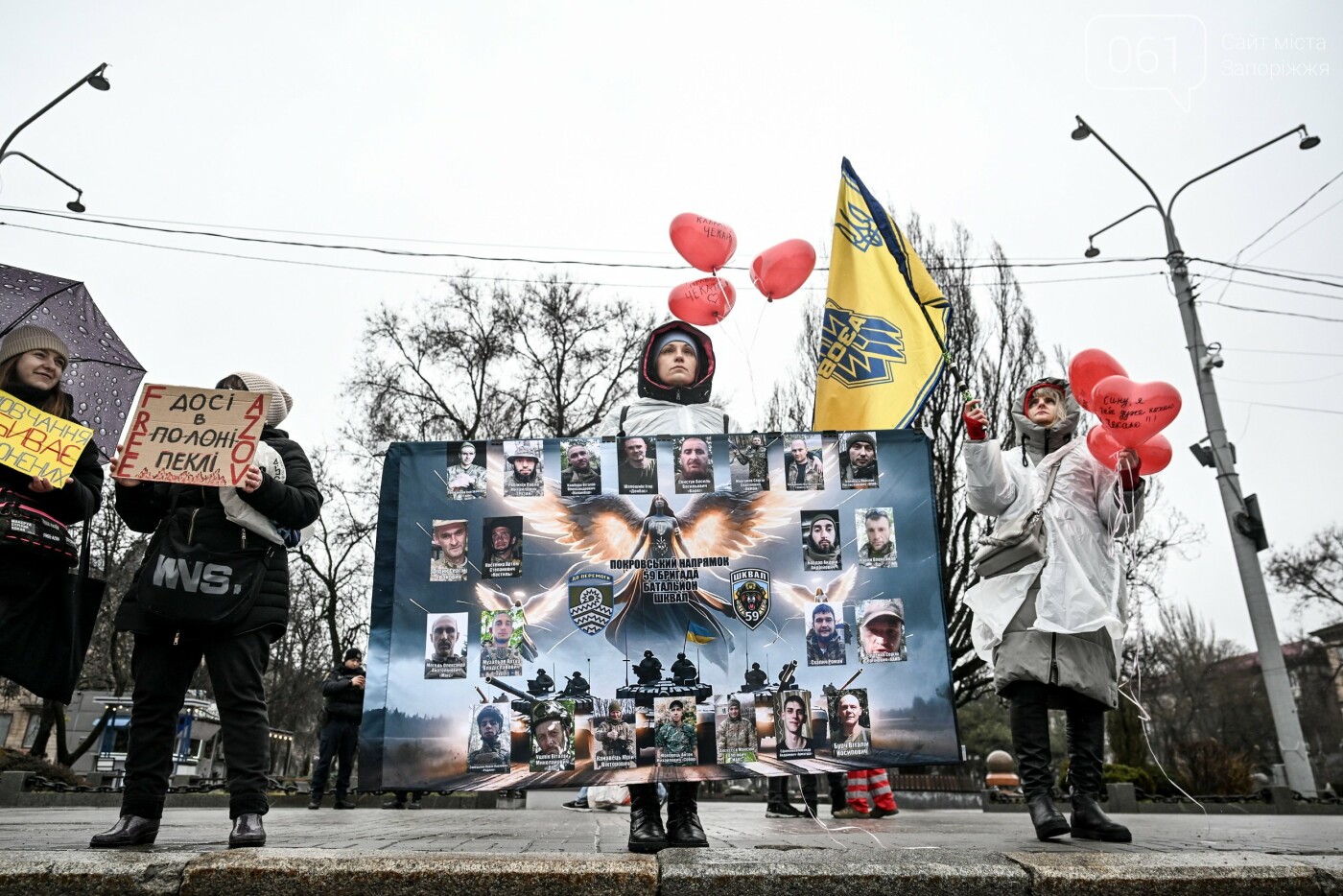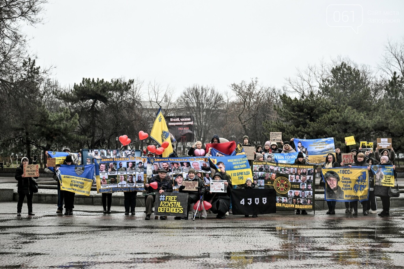 У центрі Запоріжжя на площі «Митців» відбулась акція на підтримку військовополонених та зниклих безвісти. Близько півсотні людей вийшли з плакатами, прапорами, а також принесли з собою повітряні кульки у вигляді серця, аби нагадати суспільству про те, що їхні серця не вдома, а в полоні.