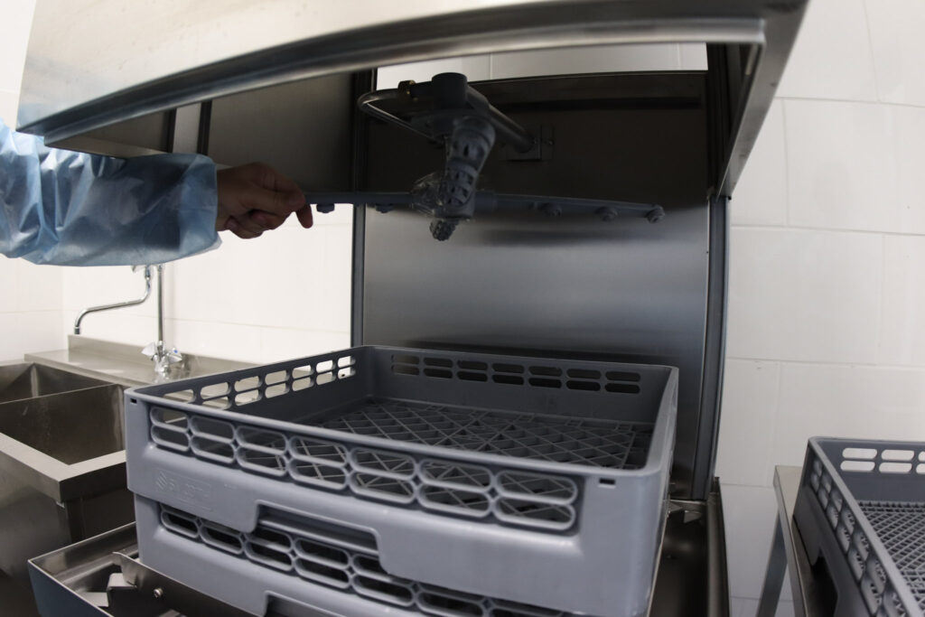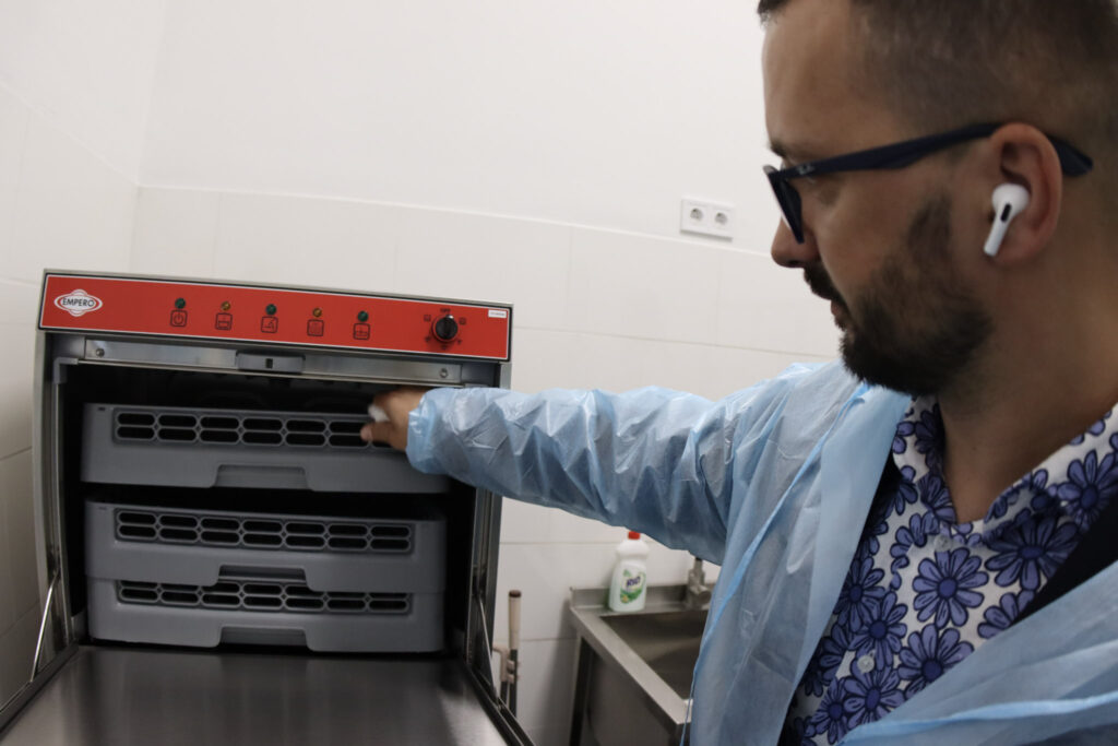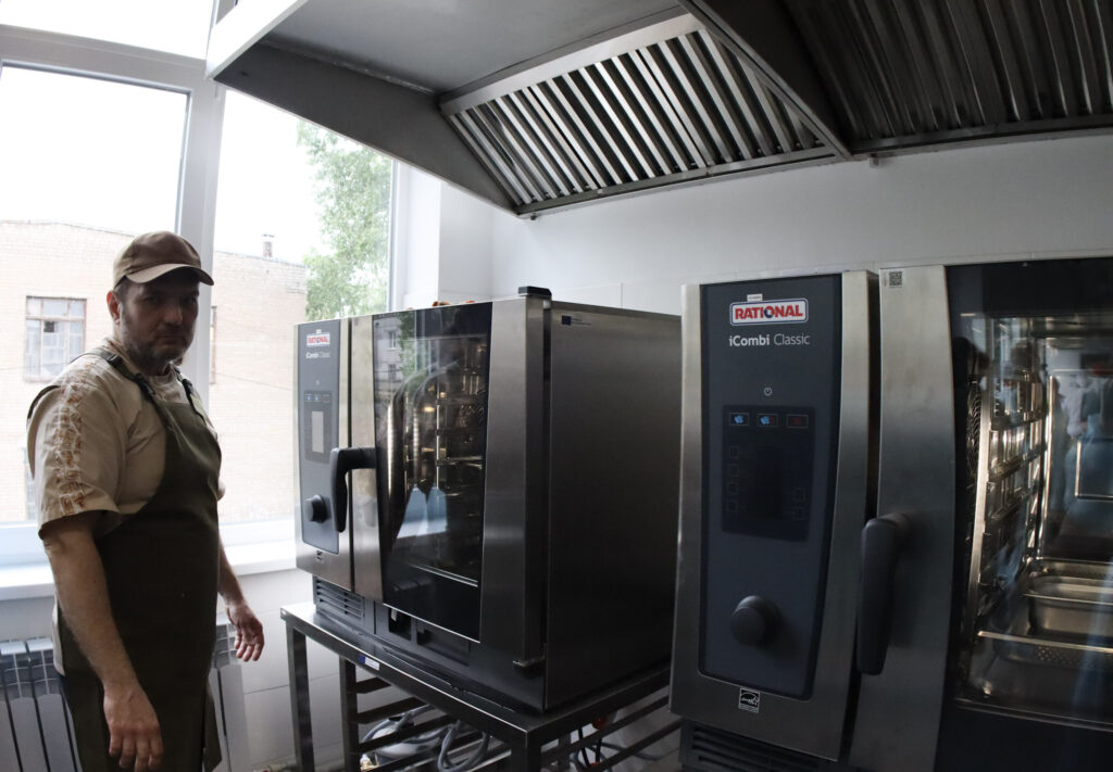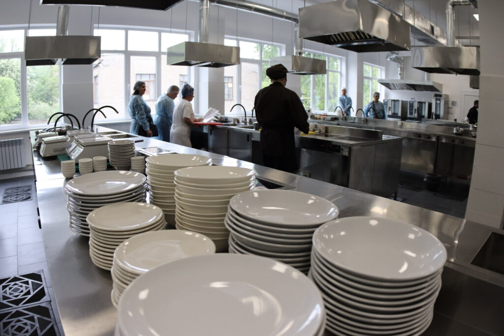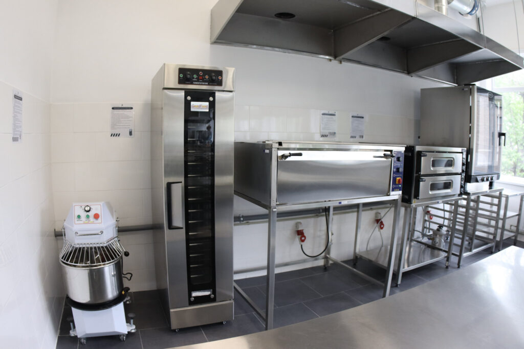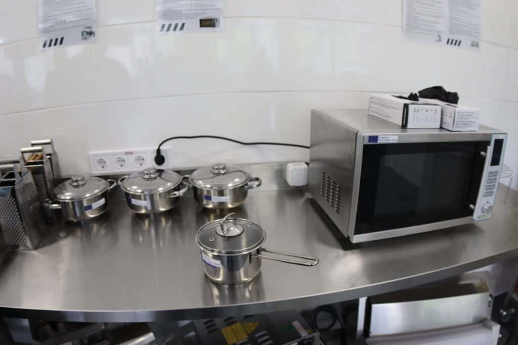 Всього в новому приміщенні обладнано 17 робочих поверхонь, які оснащені плитами. Окрім цього, є професійне обладнання й інвентар: пароконвектомати, печі, мийки, ножі, посуд, розстійні шафи, міксери, кухонні машини тощо.