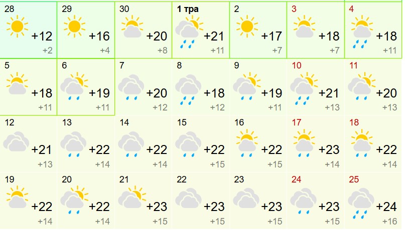 За словами метеорологів, середня місячна температура повітря передбачається 18,0° тепла, що на 1° вище за норму. Місячна кількість опадів очікується 47 мм, що в межах (107%) норми.