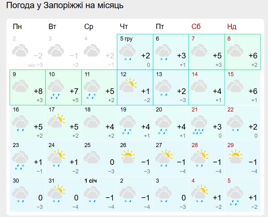 Прогноз погоди на грудень 2024