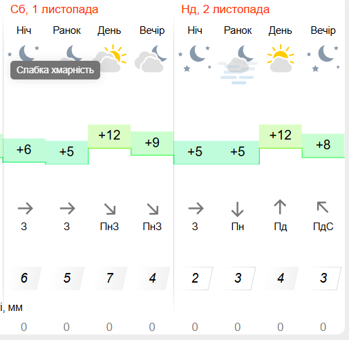 Так, 1 листопада ясною погодою не порадує – хмари закривають небо вже з самого ранку та протримаються до пізнього вечора. 2 листопада також очікується хмарний день.