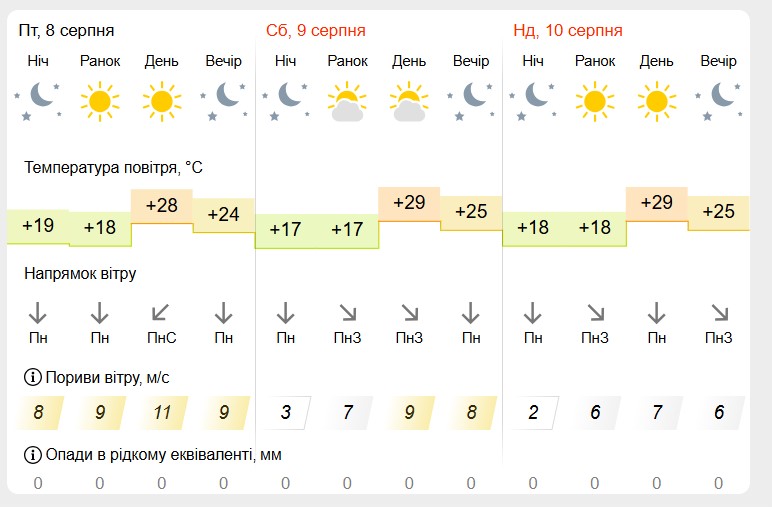 Метеорологи надали прогноз погоди по Запоріжжю на вихідні 9 і 10 серпня.