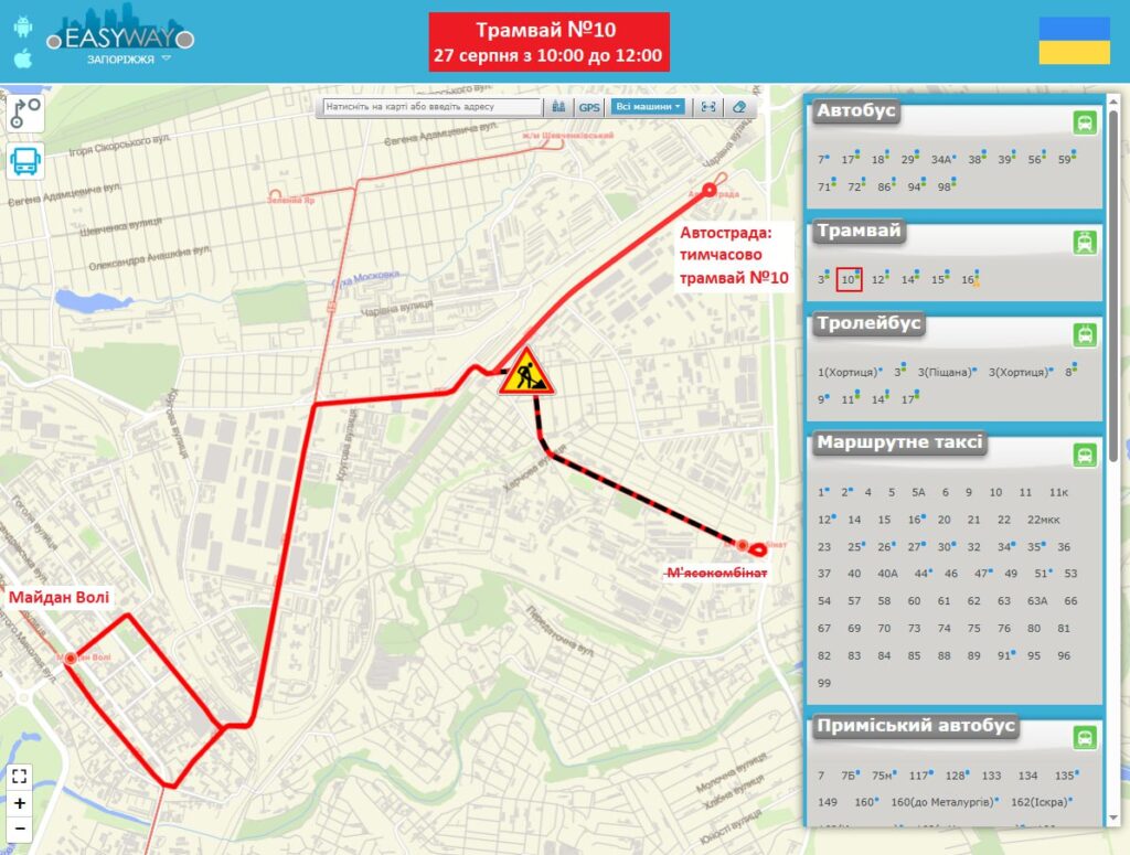 На 27 серпня в Запоріжжі заплановані зміни в роботі транспорту (КАРТА)