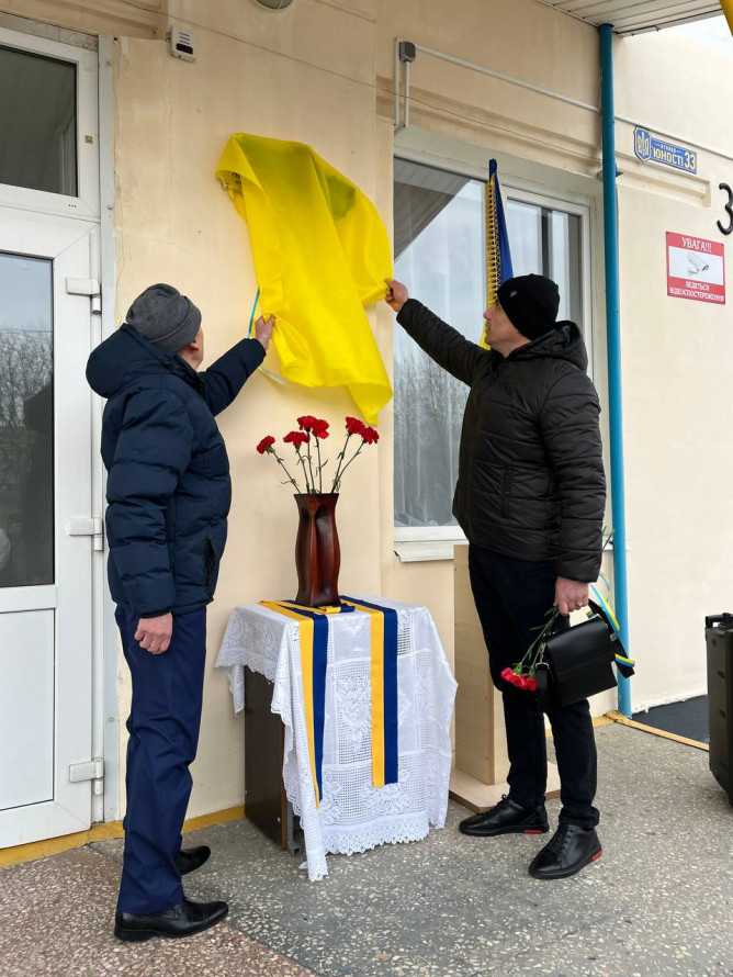 Табличку розмістили на будівлі Малокатеринівської гімназія «Мрія», де навчався Олександр.