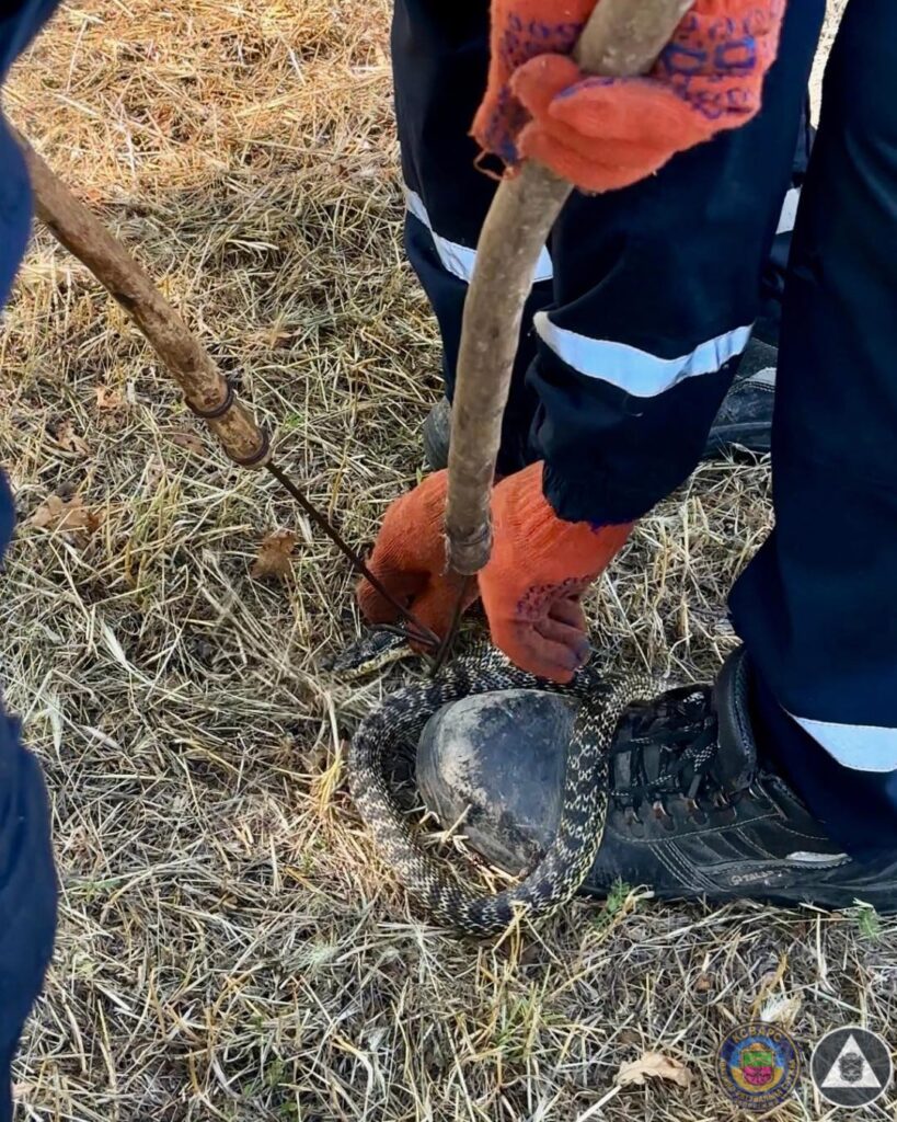 Так, вчора, 25 червня, рятувальникам КСВАРС надійшло повідомлення про виявлення змії у самому центрі міста. Співробітники служби оперативно прибули за викликом та безпечно виловили рептилію.