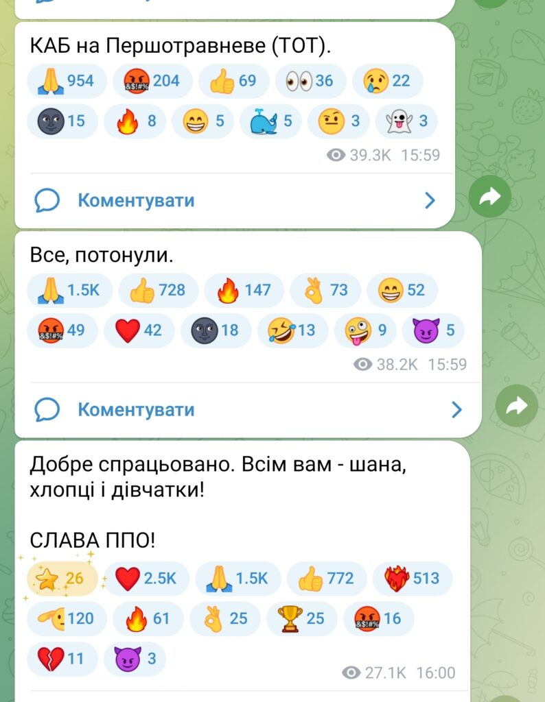 Чи не вперше було зафіксовано, що КАБи повернулив напрямку ТОТ, та врешті розтанули у воді, повідомляє поінформований телеграм канал Черешня.