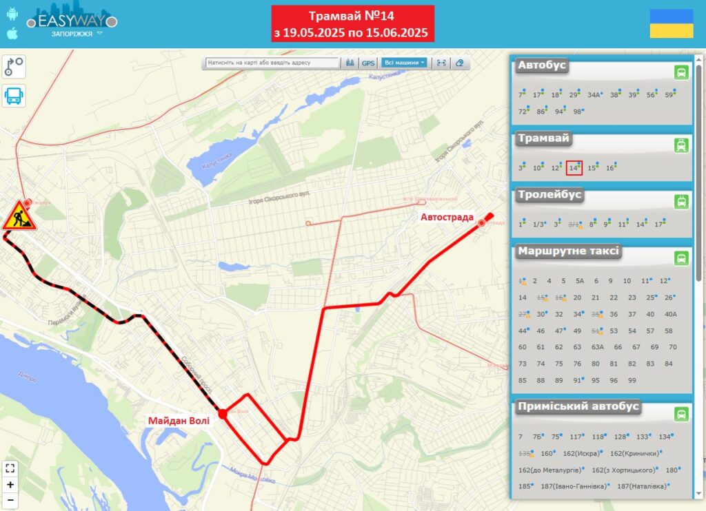 - з 9:00 19 травня по 15 червня 2025 р. трамвай №14 буде працювати за маршрутом “Автострада – Майдан Волі”.
