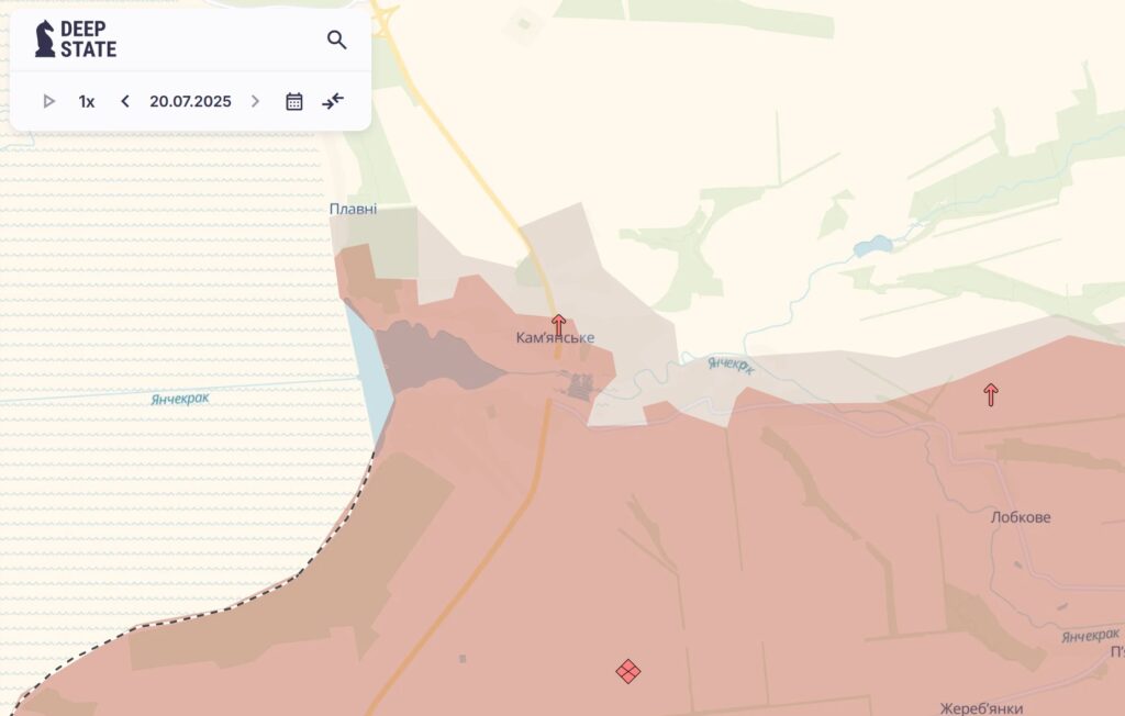 Як повідомляє Інститут вивчення війни (ISW), на підставі геолокованих відео від 20 липня, українські сили відновили позиції в північно-західній частині села Кам’янське Василівського району.