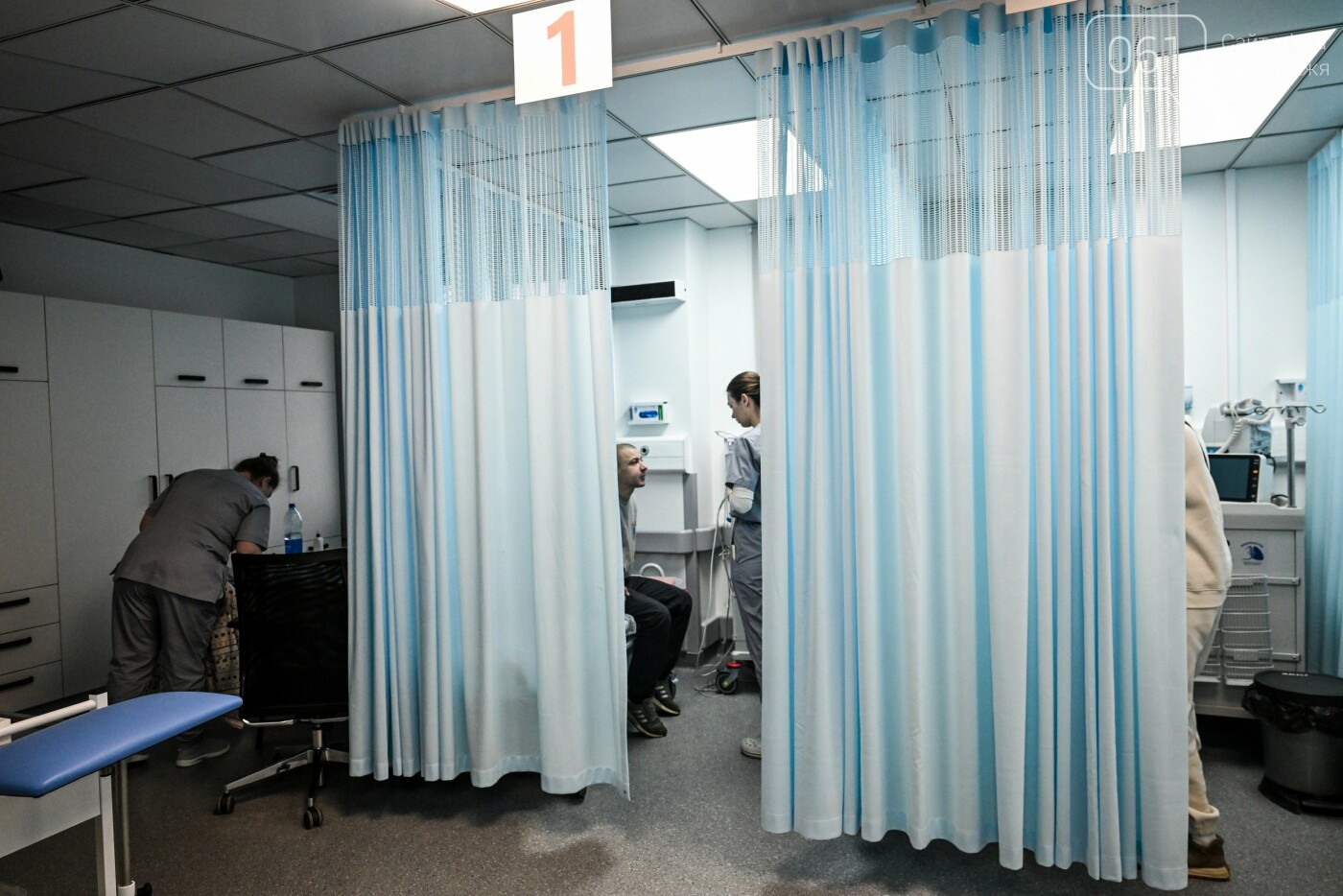 Сортування екстреної допомоги також відбувається на першому поверсі. Саме сюди доставляють пацієнтів каретами “швидкої” допомоги. У відділенні працюють близько 100 співробітників