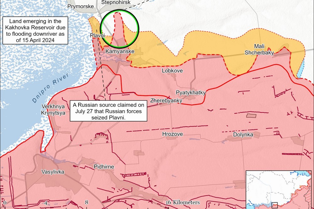 Російські підрозділи у західній частині Запорізької області наблизилися настільки, що різниця у кількох кілометрів може відкрити їм можливість вести артилерійський вогонь безпосередньо по Запоріжжю.