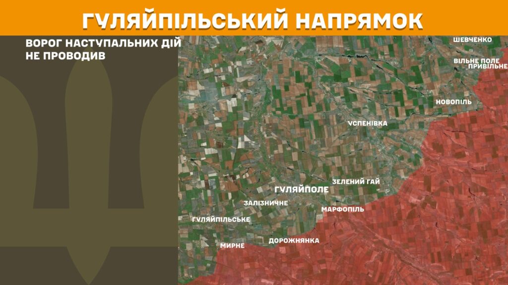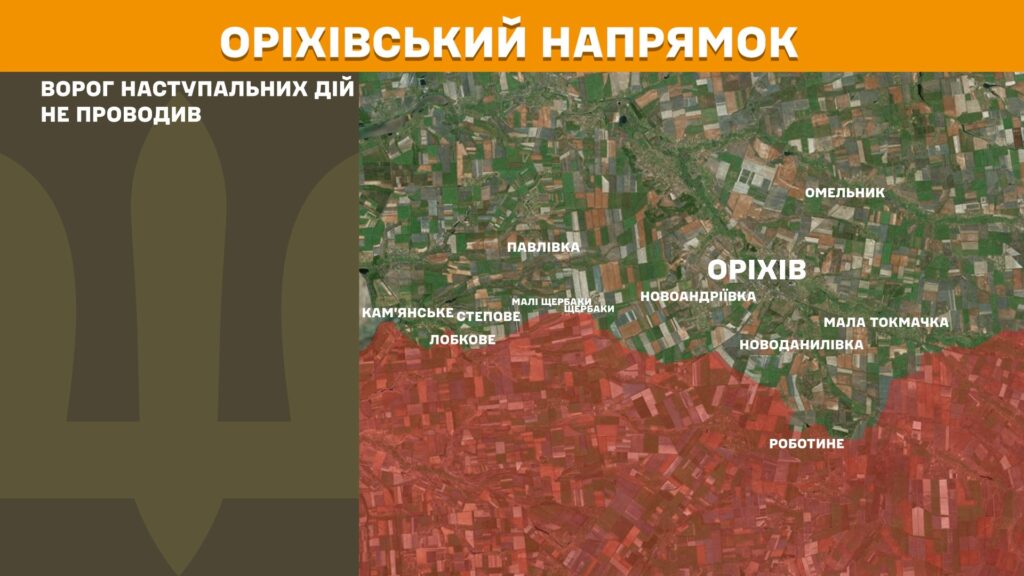 На Гуляйпільському та Оріхівському напрямках противник наступальних дій не здійснював.