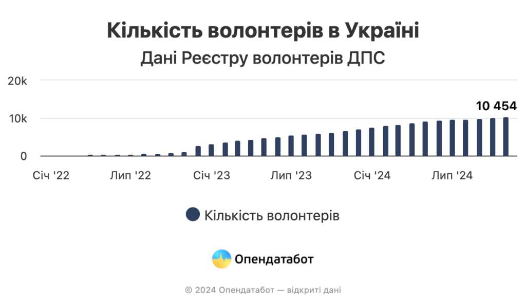 У квітні 2022 року зареєстровано 379 волонтерів, а у листопаді 2024 їх 10454. Щомісяця до Реєстру додавалося, в середньому, 310 людей.