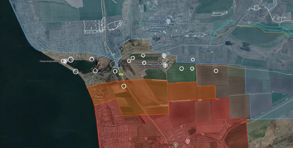 Playfra відзначає, що росіяни поступово заповнюють сіру зону між Кам’янським та Плавнями з одного боку та Степногірськом та Приморським з іншого.
