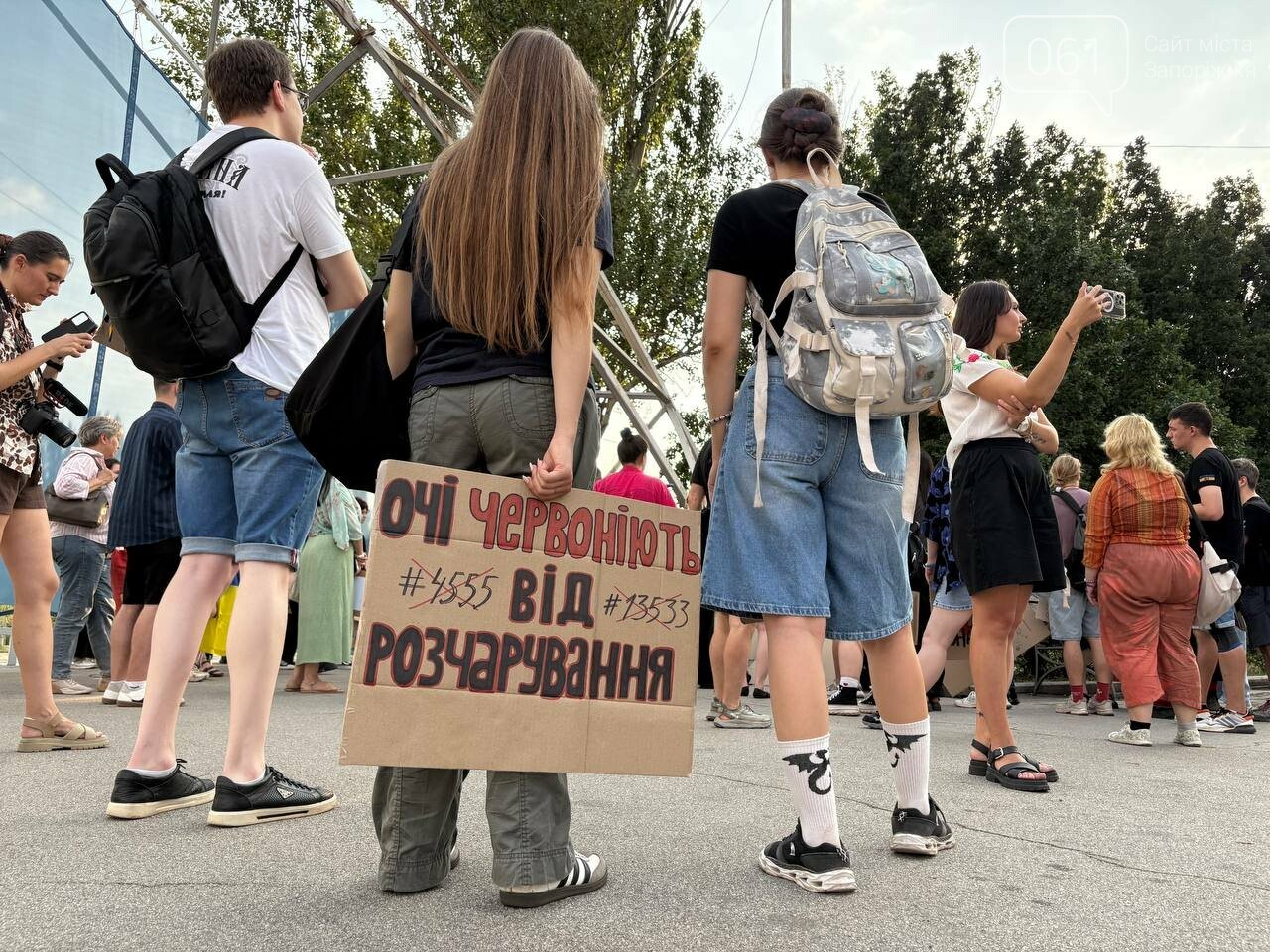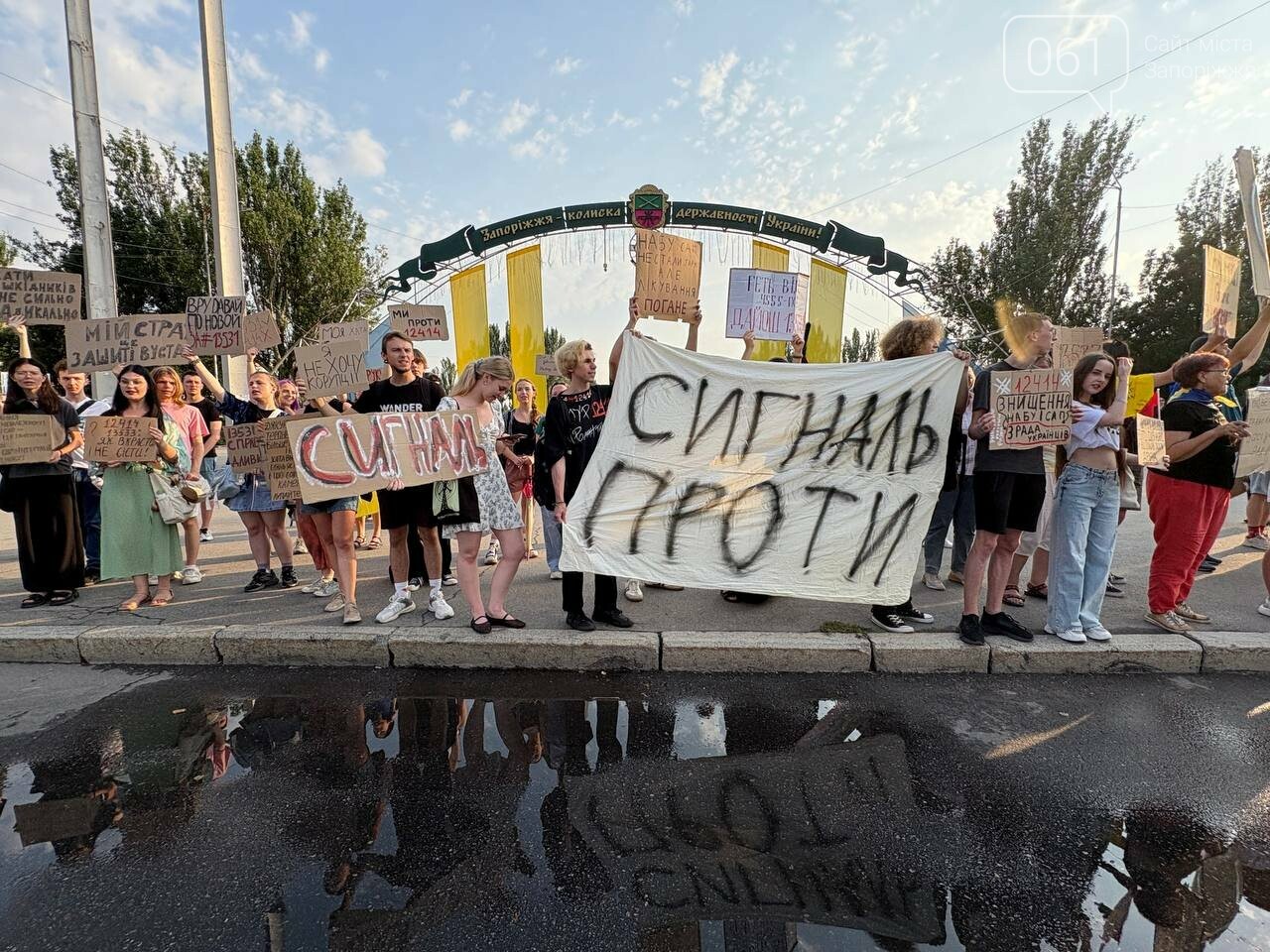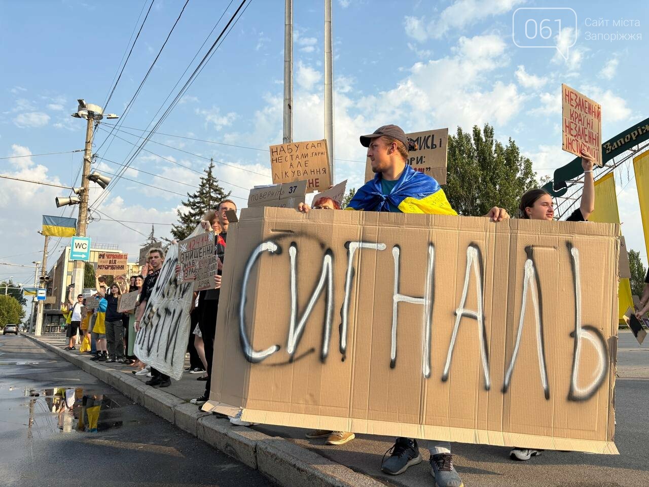 Увечері, 30 липня, на площі Фестивальній у Запоріжжі зібралися близько 60–70 учасників протесту. Акція проходить навпроти будівлі обласної військової адміністрації. Про це повідомляє кореспондент 061.