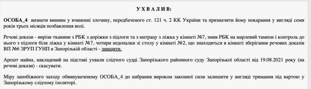 Запорізький районний суд виніс вирок у справі чоловіка, якому пред’явлено обвинувачення в умисному спричиненні тяжких тілесних ушкоджень, що призвели до смерті його співмешканки.