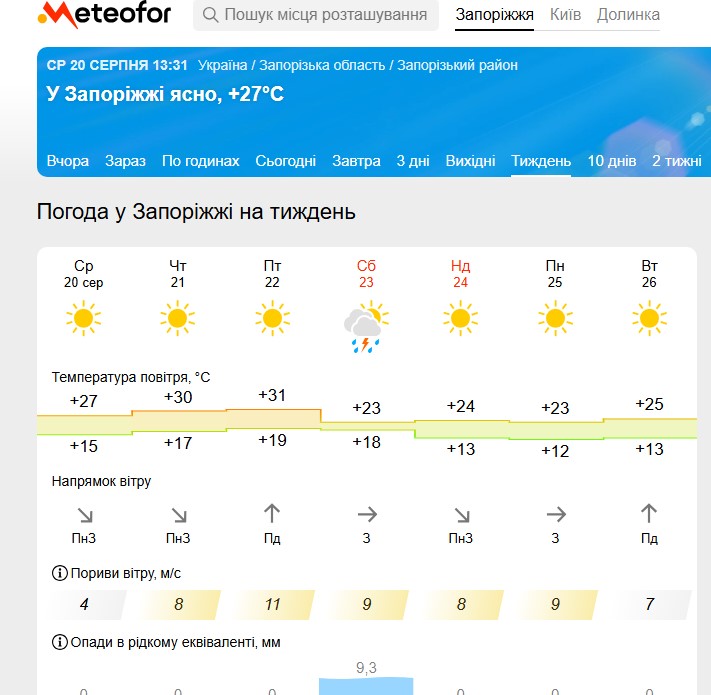The post Погода в Запоріжжі: скоро прийдуть дощі та похолодання first appeared on Портал Акцент.