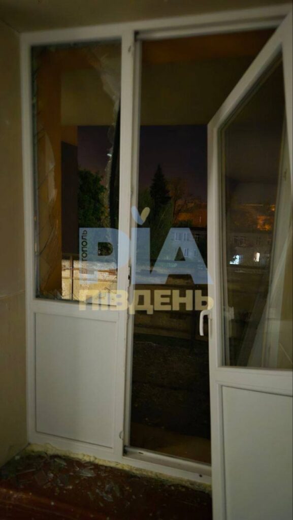 На фото з місця події видно наслідки вибухової хвилі: скло на підлозі, вибиті рами та пошкоджені стіни. Фото опубліковані РіаПівдень.