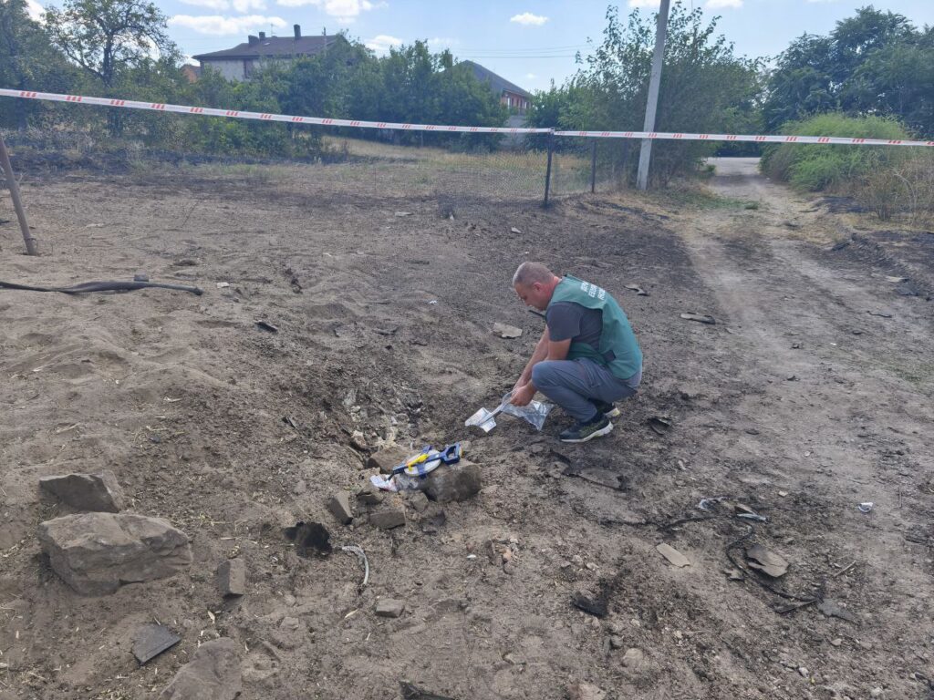 Окрім візуального огляду, інспектори відібрали проби ґрунту, які буде передано до лабораторії для досліджень. Це дасть можливість визначити рівень забруднення землі продуктами горіння, уламками вибухівки та будівельними матеріалами.