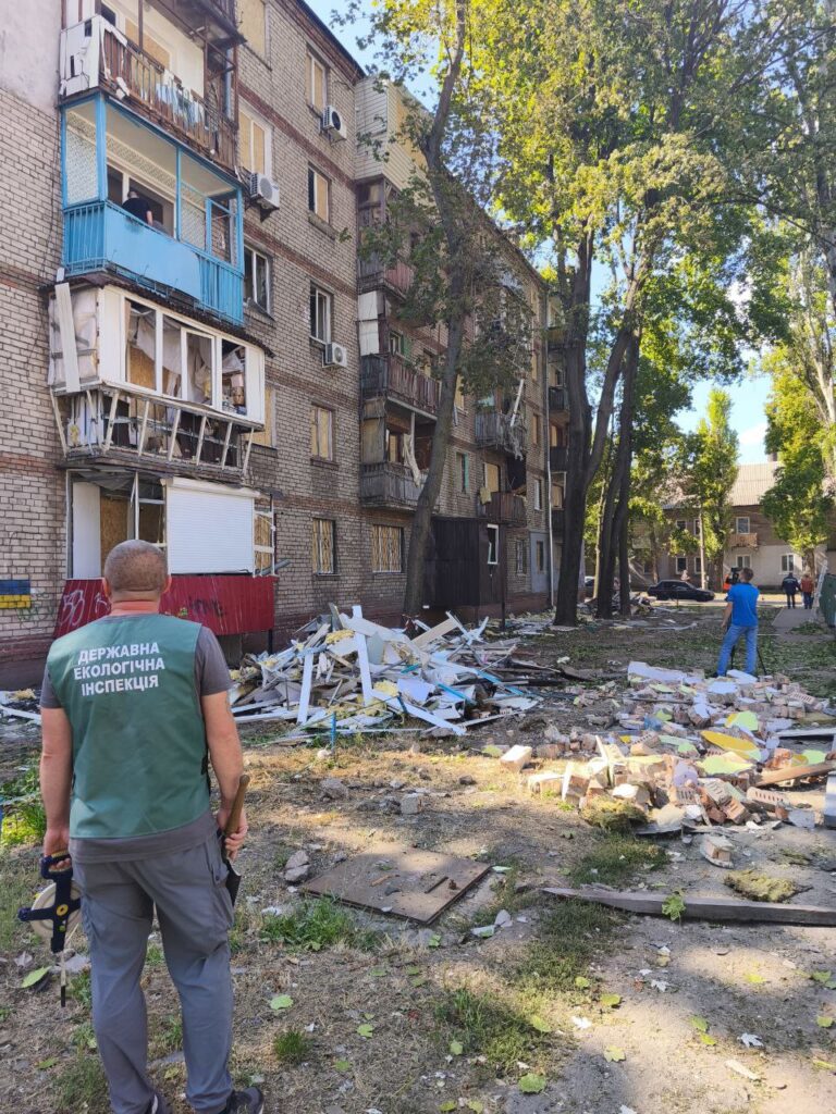 У Заводському та Шевченківському районах Запоріжжя триває ліквідація наслідків нічних атак російських безпілотників. Фахівці Державної екологічної інспекції Південного округу здійснили виїзне обстеження територій, що найбільше постраждали.