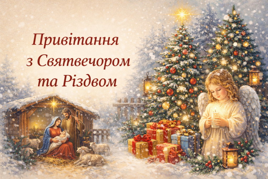 Вітаю зі Святим вечором та Різдвом! Нехай родинний стіл об’єднає серця, а Різдво подарує світло і спокій.