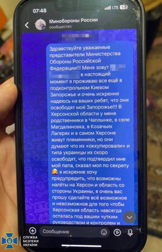 У Запоріжжі СБУ затримала місцеву мешканку, яка закликала до захоплення міста росіянами.
