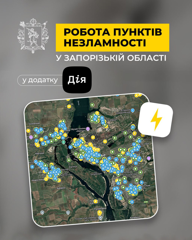 Жителі Запорізької області можуть швидко знайти найближчий Пункт незламності – актуальна інформація зʼявилася в мобільному застосунку «Дія».
