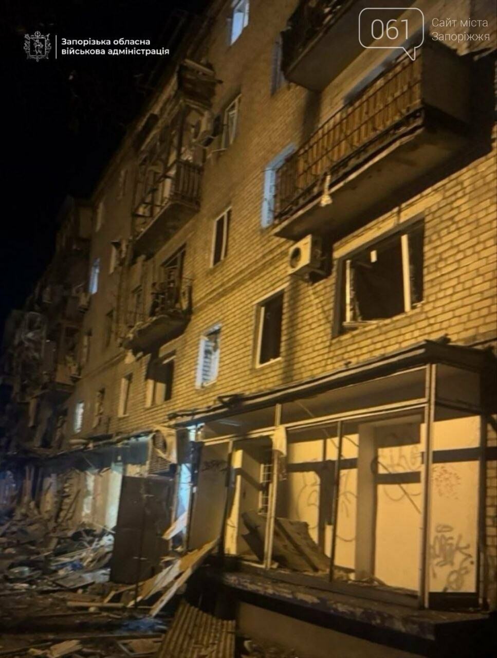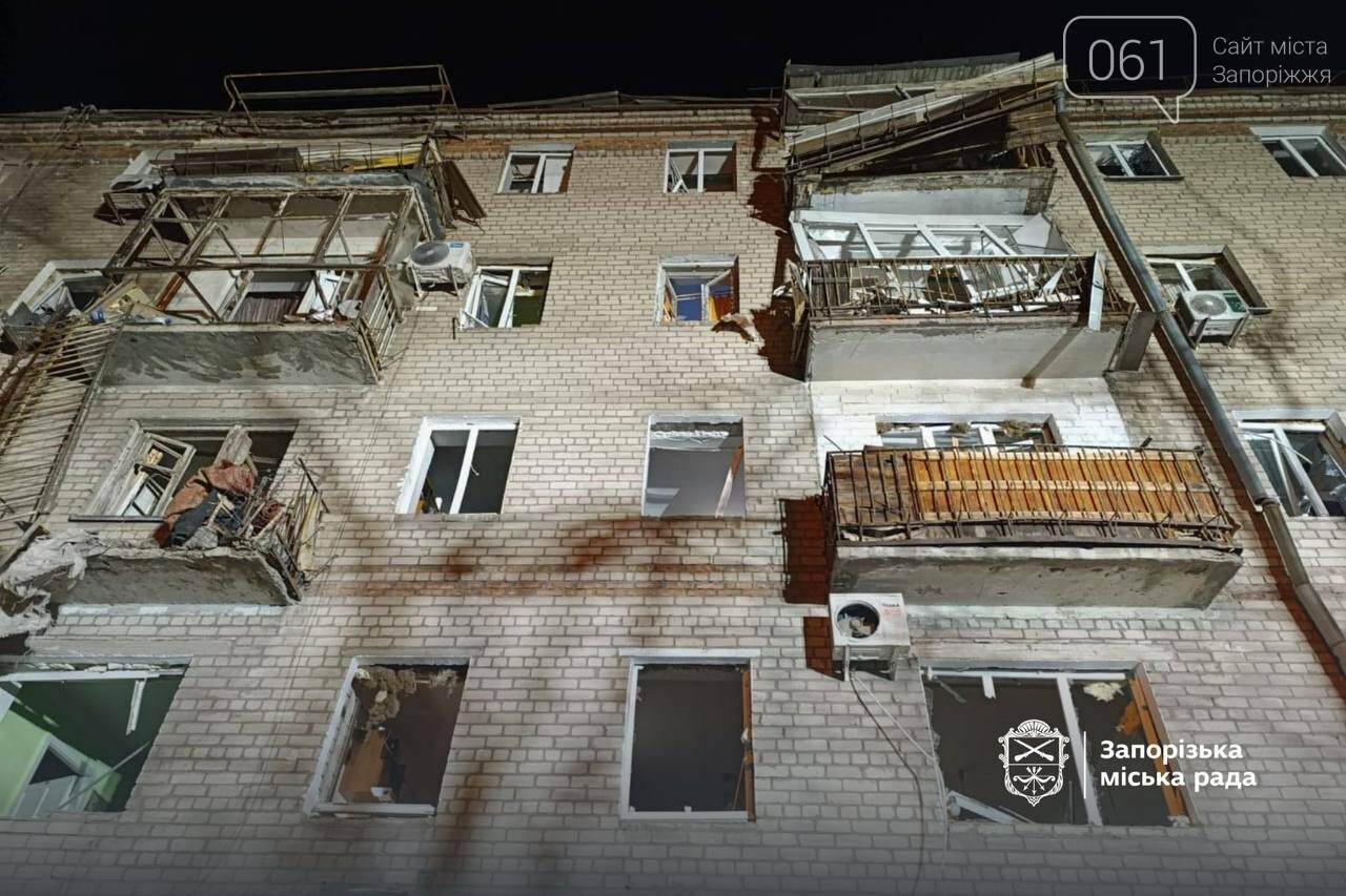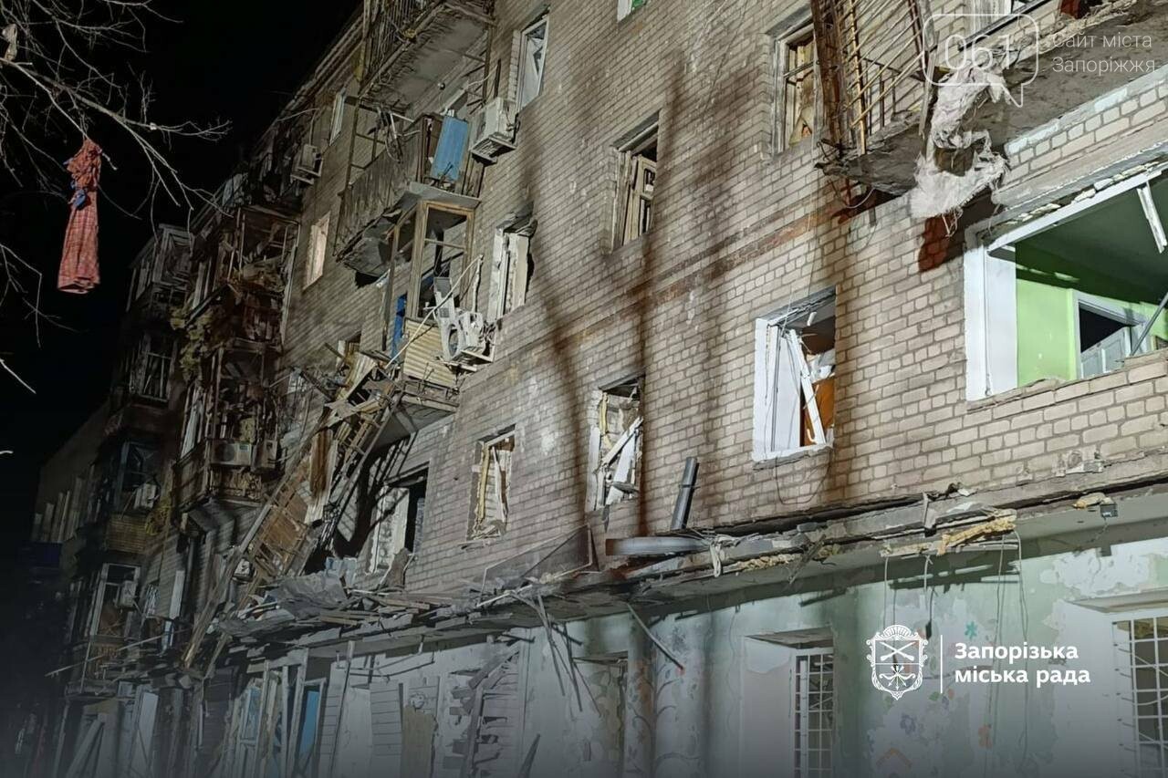 У Запоріжжі російський безпілотник пошкодив ще одну багатоповерхівку. Про це повідомив голова Запорізької обласної військової адміністрації Іван Федоров