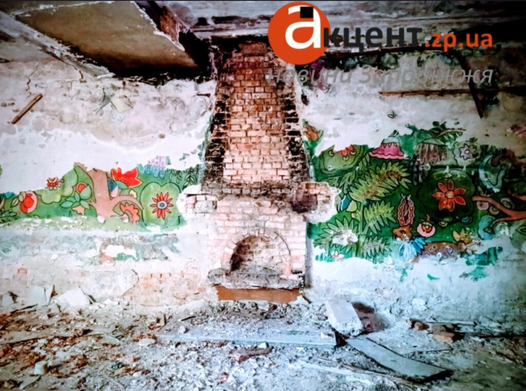 Десь на стінах проступають розмиті фрагменти розписів відомих запорізьких художників Миронових, а в господарських приміщеннях збереглася стара плитка і навіть радянські вимикачі.